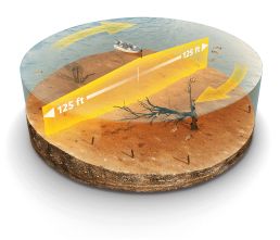 - MEGA 360 Imaging bietet zwei Sonarquellenoptionen: 360-Imaging-Modus und Side-Imaging-Modus. Wechseln Sie vom MEGA 360 Imaging-Sonar zur Verwendung dieses Wandlers als Side-Imaging-Sonarquelle. Bei Verbindung mit einem Ethernet-Netzwerk können diese Sonaransichten mit anderen kompatiblen Humminbird-Modellen im Netzwerk geteilt werden.