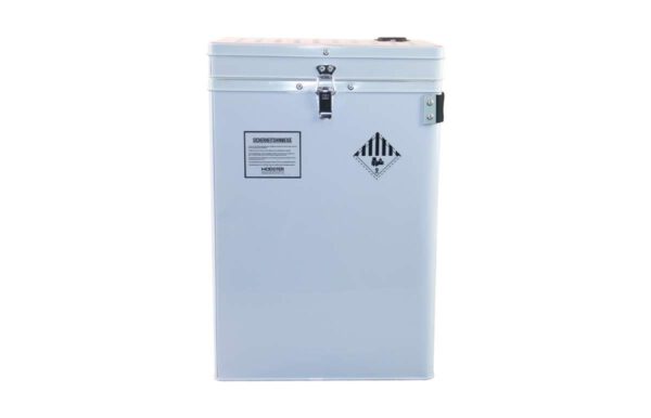 Im Inneren der Box können bis zu 800° bei einem Brand entstehen. Durch die spezielle Isolierung der Box werden Boden und Seitenwand jedoch maximal bis zu 80° heiß. Das austretende Gas erreicht eine maximale Temperatur von 150°.