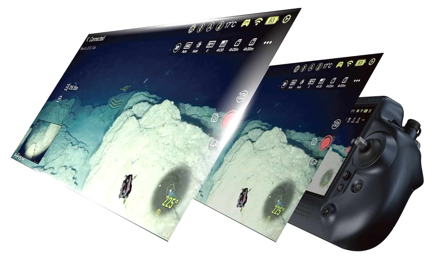 Das integrierte 7-Zoll-Display liefert gestochen scharfe 1080p Full-HD-Bilder mit einer Spitzenhelligkeit von 1500 Nits – deutlich heller als herkömmliche Fernbedienungen. Selbst bei direkter Sonneneinstrahlung bleibt die Anzeige klar und kontrastreich. So behältst du jederzeit den perfekten Überblick über dein Unterwasserbild in Echtzeit.